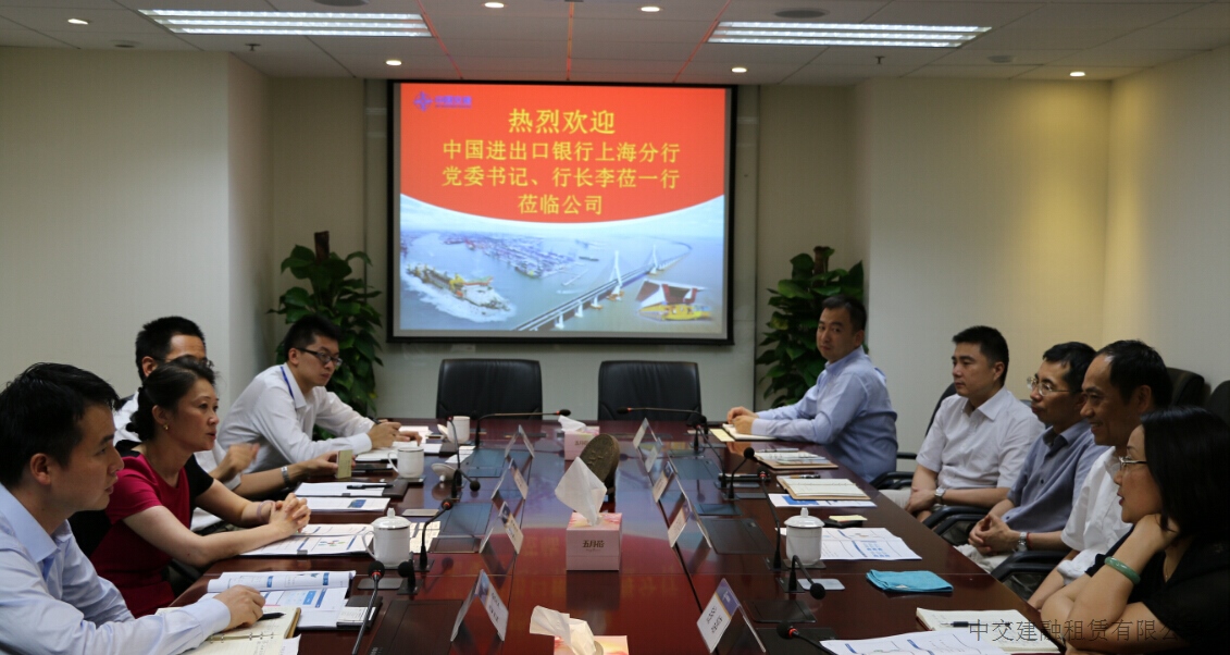 2015年7月30日,中国进出口银行上海市分行党委书记、行长李莅一行来公司开展业务合作交流,中交租赁董事长、党委书记张剑兴;总经理陈刚;副总经理、总会计师钱鎔,协同相关部门负责人参加了交流座谈,双方分别介绍了各自公司的基本情况,对未来的业务合作进行了展望。李行长表示,进出口银行正逐步开展国内业务,其资金成本低和期限长的优势与公司的资金需求契合度很高。双方就开展授信、项目融资等方面表达了深入合作意向。