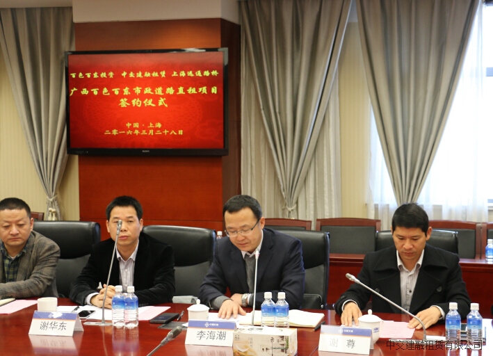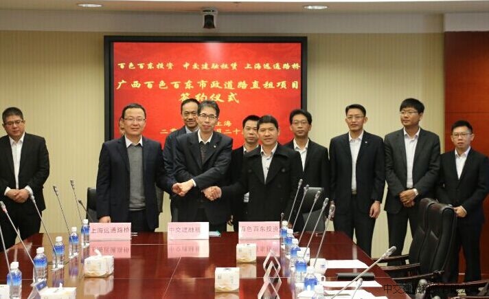 2016年3月28日上午,中交建融租赁有限公司、广西百色百东投资有限公司、上海远通路桥工程有限公司在上海正式签署“广西百色百东市政道路直租项目”业务合作协议,中交建融租赁董事长、党委书记张剑兴,百色百东投资董事长、总经理谢尊,上海远通路桥董事长、总经理李海潮出席了签约仪式并致辞。签约仪式由中交建融租赁副总经理兼总会计师钱鎔主持。