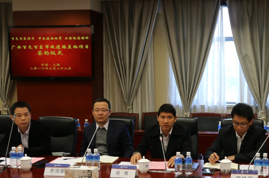 中交建融租赁总经理陈刚代表公司,分别与百色百东投资、上海远通路桥签署了三方合作协议,与百色百东投资签署了市政道路融资租赁合同。