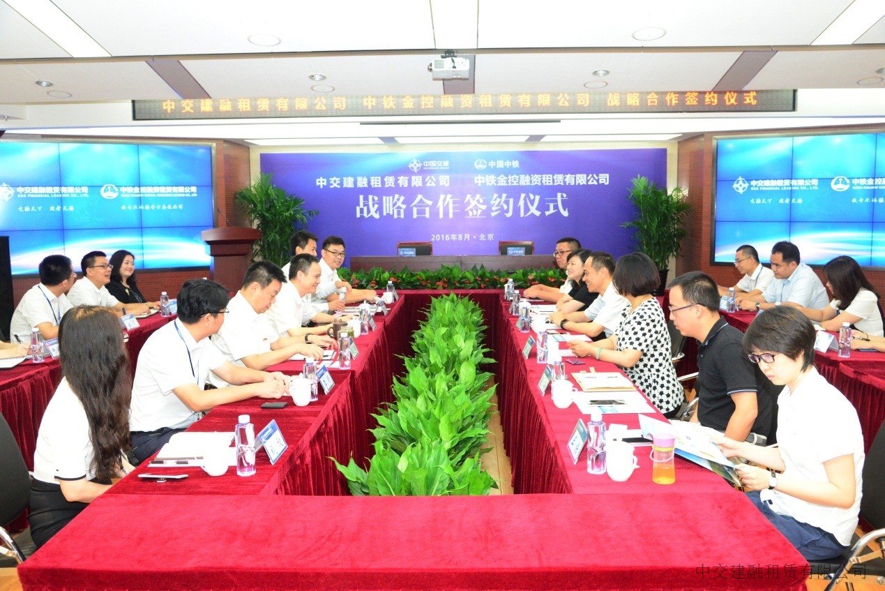 2016年8月11日,中交租赁与中铁金控租赁在北京签署战略合作协议,正式建立全面战略合作伙伴关系。中交租赁董事长、党委书记张剑兴,中铁金控租赁总经理梅家周代表双方签署战略合作协议。中交租赁副总经理兼总会计师钱鎔、总经理助理高晓霞,中铁金控租赁副总经理丁根良,以及双方公司相关部门负责人参加签约仪式。