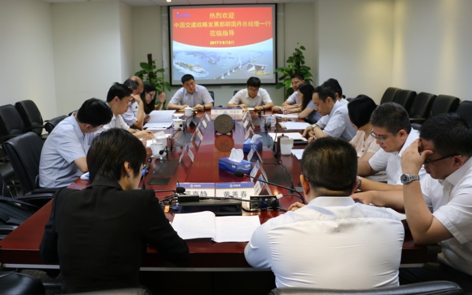 2017年8月8日,中国交建战略发展部总经理胡国丹一行来到公司调研,公司董事长、党委书记张剑兴,总经理陈刚,副总经理、总会计师钱鎔,运营总监、业务总监及相关部门负责人参加会议。