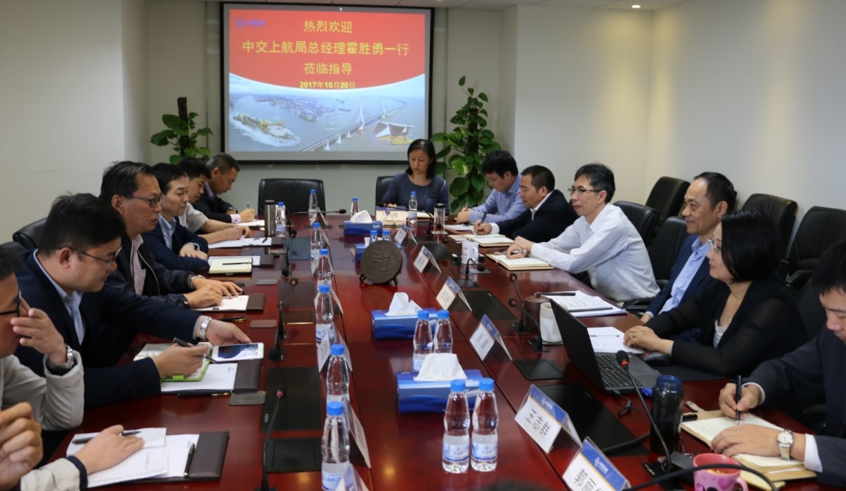 10月20日,中交上海航道局有限公司总经理霍胜勇、总会计师朱晓怀一行来公司开展合作交流,公司领导张剑兴、陈刚、钱鎔、罗志宏参加会谈。