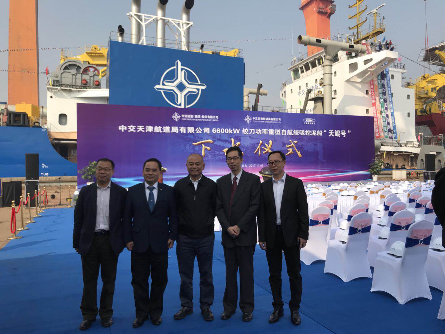 11月3日,公司总经理陈刚一行出席亚洲最大绞吸船“天鲲号”下水仪式。“天鲲号”成功下水,标志着公司首单重大装备经营性租赁项目取得突破。