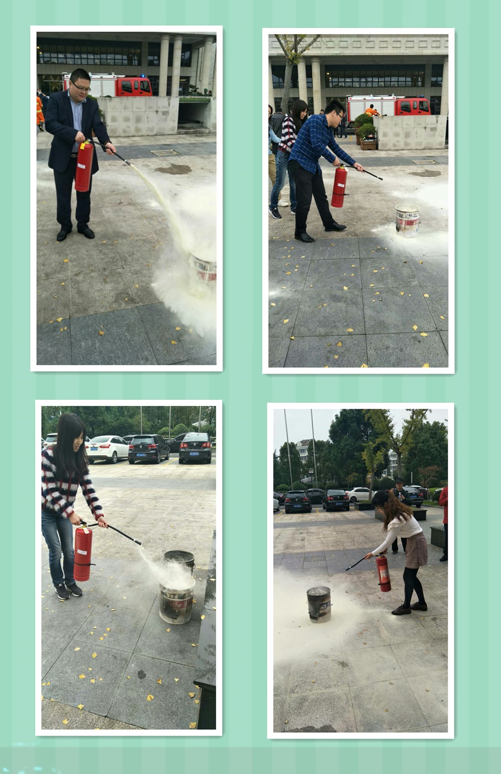 本次演练包括了安全知识培训及灭火器明火演练等2个部分。消防官兵首先就日常消防安全基本常识进行培训授课;随后,员工们来到振华广场参加了灭火器明火演练。演练现场,干粉灭火器一字排开,消防员现场为大家讲解火灾发生时的注意事项、灭火器的正确使用方法、如何扑救灭火等知识,并作了示范。讲解过后,员工们跃跃欲试,纷纷动手操作灭火器,实践锻炼灭火技能。