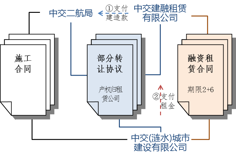 融资租赁(PPP+BLT)方案中:中交租赁作为出租人、PPP项目公司作为承租人、二航局作为建造方,PPP项目中部分建筑物(1#-6#粮仓、机械库)作为租赁资产;项目建造期内(2年)中交租赁向二航局支付建造款获取租赁资产所有权,项目租赁期内(6年)PPP项目公司向中交租赁定期支付租金获取租赁资产运营权,租赁期结束项目公司重获租赁资产所有权(详见下图,交易结构图)。PPP+BLT方案实现了项目99%比例融资,且租赁期租金支付节奏与PPP项目运营回款节奏完全匹配,最大限度提高了项目公司资金使用效率。