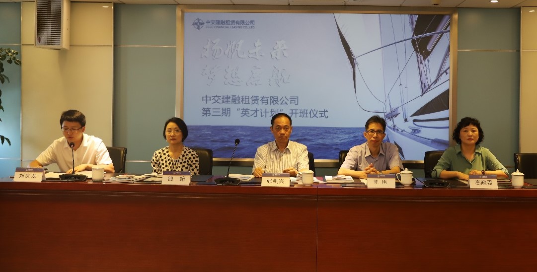 7月23日上午,中交租赁举行第三期“英才计划”内训班开班仪式。来自上海总部、广州公司、雄安公司的29名新员工参加培训,公司董事长张剑兴,总经理陈刚,副总经理、总会计师、总法律顾问钱鎔,副总经理高晓霞,总经理助理(业务总监)夏勇及相关部门负责人、授课讲师出席仪式。
