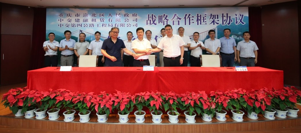7月27日,中交建融与重庆市渝北区人民政府、中交四公局在中交四公局局总部签署了战略合作框架协议,公司总经理陈刚、重庆市渝北区人民政府区长唐川、中交四公局总经理蔡彬出席仪式并致辞,就深化战略合作、推动协同发展等事宜举行了会谈。公司业务总监夏勇、中交四公局副总经理许宝忠、重庆市渝北区副区长颜其勇代表三方签订《战略合作框架协议》。